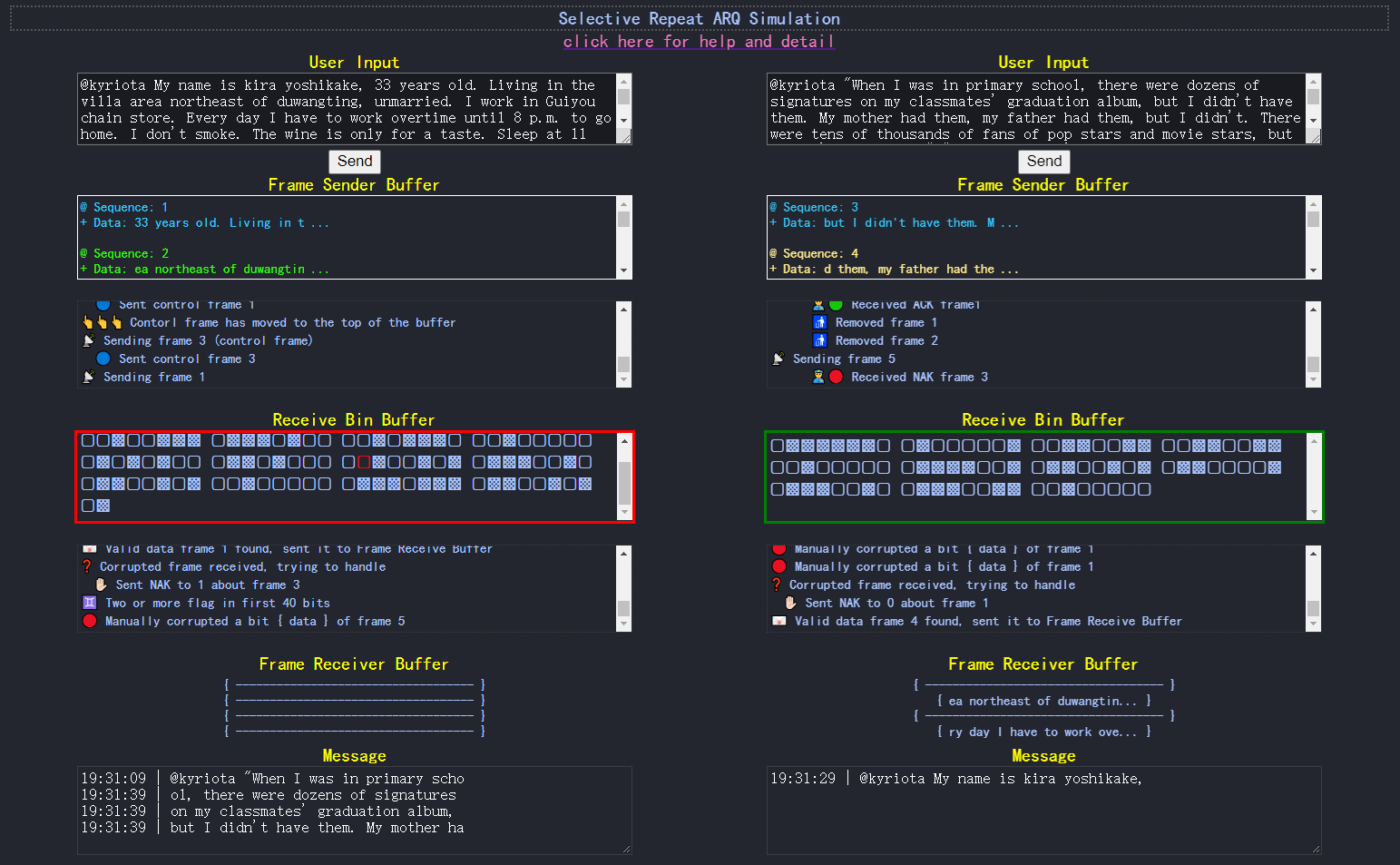 Just a simple version of selective repeat ARQ, but maybe helpful for you to understand the algorithm further.
